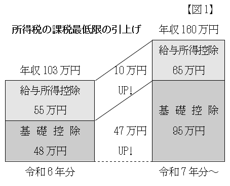 この改正を踏まえると給与収入の方は、所得税がかからない範囲が従来は103万円以下だったものが、令和7年より160万円以下まで拡大したということになります。